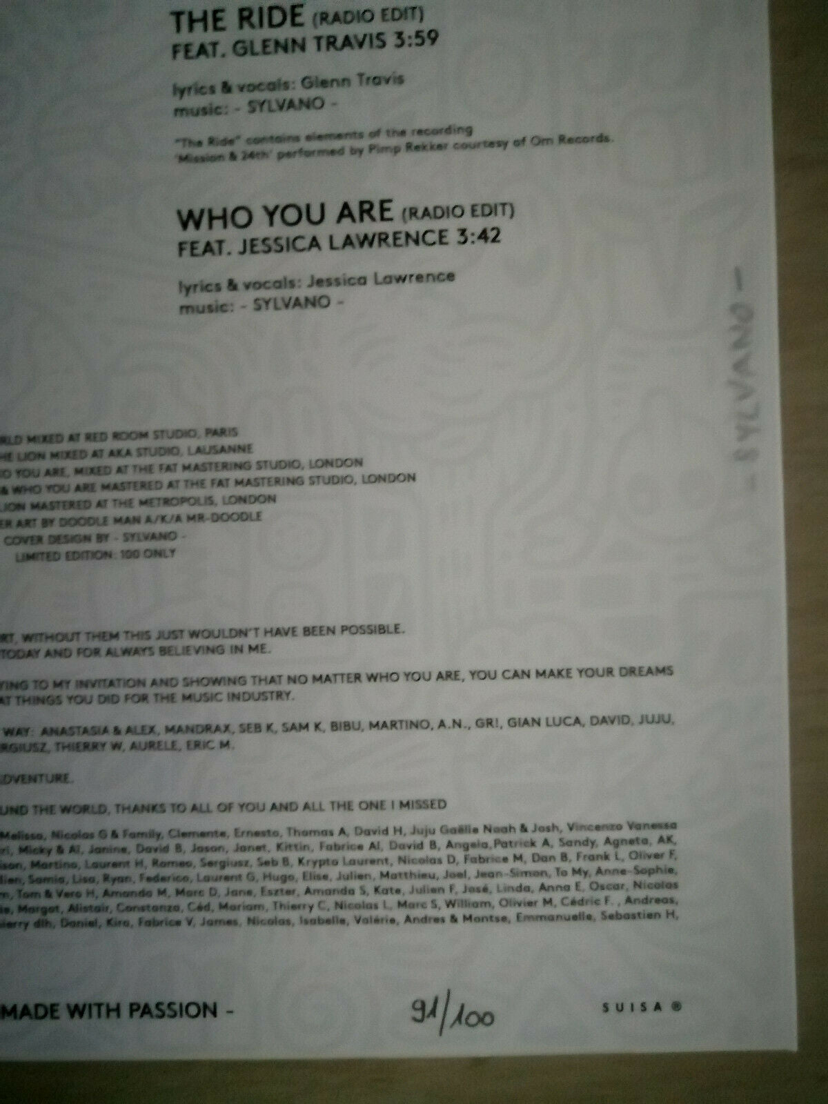 Hand signed and numbered: 91/100 / signed by Sylvano